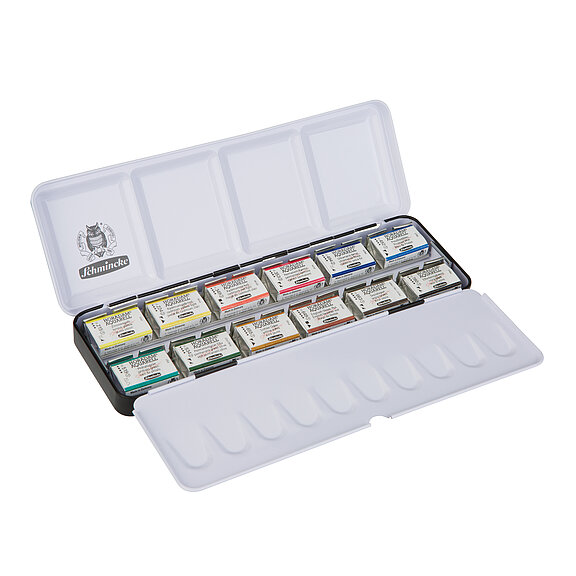 Metallkasten mit 12 x ½ Näpfchen und 1 x Pinsel