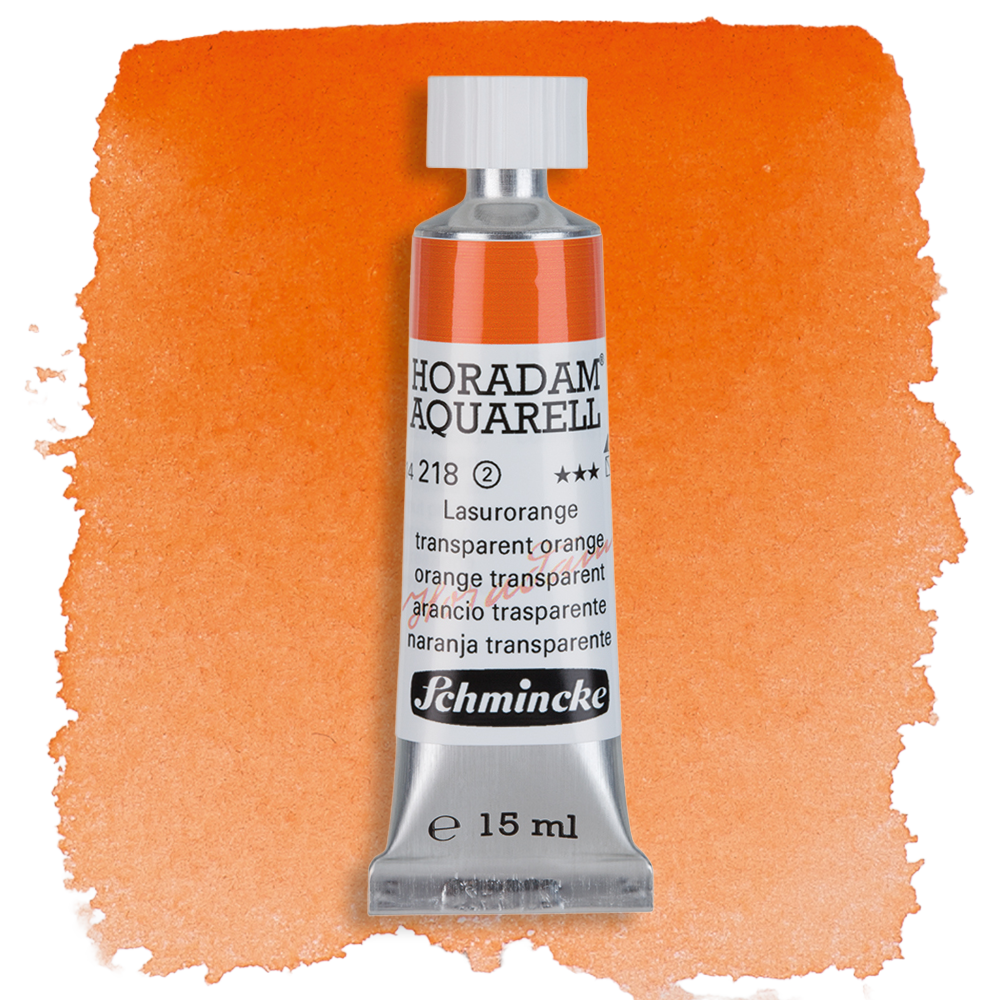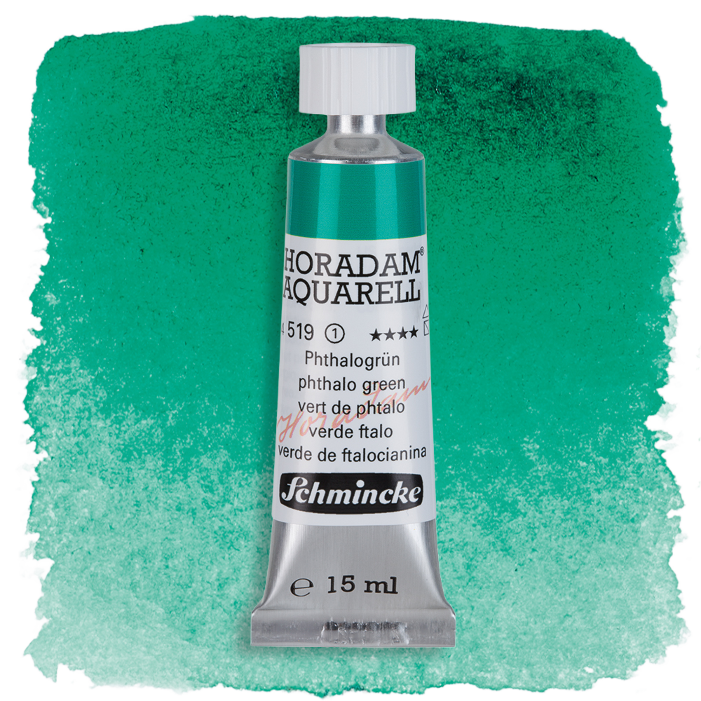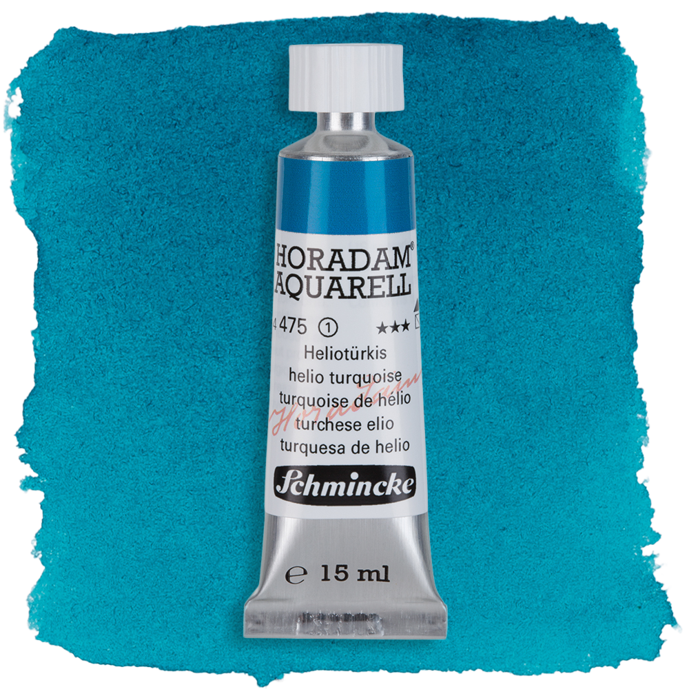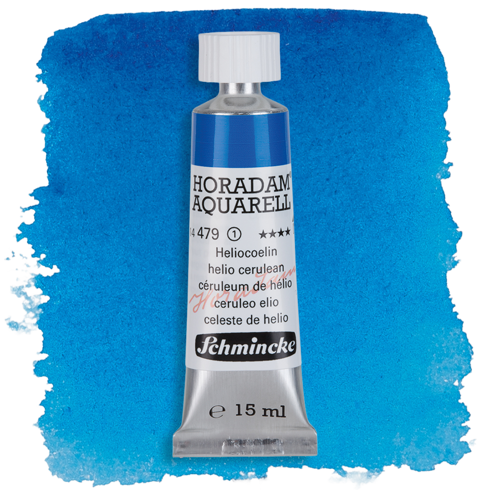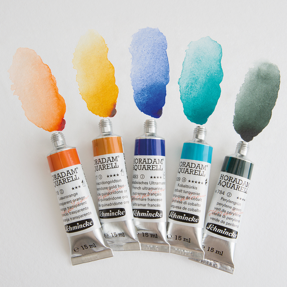 Meine Lieblingsfarben von Schmincke Horadam sind Lasurorange, Phthalogrün, Heliotürkis, Heliocoelin, Kobaltcoelin (wie man sehen kann, mag ich blaue Farben sehr), Manganviolett und Neutraltinte. Lasurorange ist eine wunderschöne, klare, sehr intensive Farbe, die ich gern als Kontrast zu Blautönen verwende. Phthalogrün ist perfekt für Mischungen, Manganviolett granuliert sehr schön und Neutraltinte ist großartig für Nachtszenen. Insgesamt bevorzuge ich transparente oder semi-transparente Farben, da ich gern lasierend arbeite.