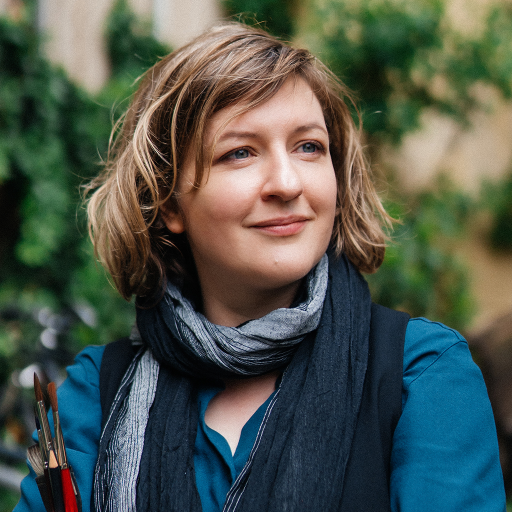 Ich male gern draußen im Skizzenbuch und für größere Bilder nehme ich Skizzen und Fotos von dem Ort als Inspiration und arbeite dann in Ruhe im Atelier.